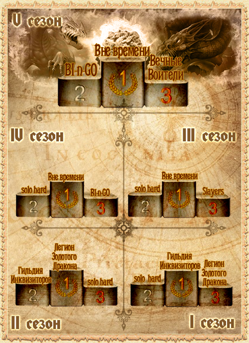 Daverk: Борьба была между тремя кланами. Просто соло хард, в основном, сражались с нами за первое, каждый четверг :) Ну а за второе и третье, получилось, Воители с Бинго. На самом деле все три клана примерно равны по силе, но мотивация была выше всех у Воителей. Им немного не хватило до второго места. Бинго же, будучи, на мой взгляд, в этой гонке фаворитом, допустили несколько досадных ошибок, которые и добавили гонке немного интриги :)