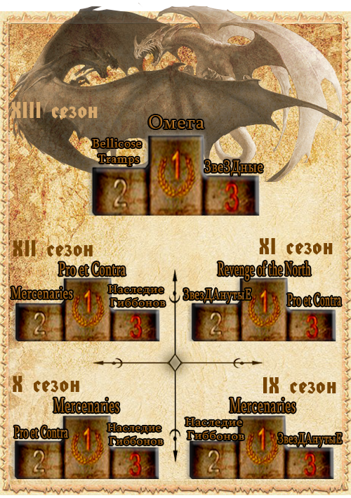 Ксанатос: Два первых места подряд еще до этого альянса... До этого годик или два там сидели миноровские топы - Гиббоны и Пуры. Потом мы забрали на два КВ ветвь победителей. Разок пропустили, а вернулись уже в составе альянса и забрали второе место.