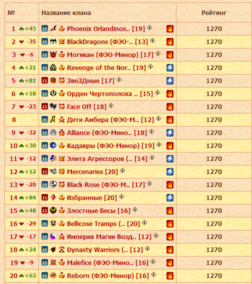 Aspirinko: Основные соперники, представляющие Минор - DarkGlow, Сиамангии, Teos. Также Наследие Гиббонов и Bellicose Tramps, если будут участвовать. Со стороны магмар Минора трудно выявить соперников. Если Infected вдруг не будут участвовать, то маленький пьедестал среди магмар Минора достанется Орлам :) По поводу Прайма, честно, не могу сказать, какая там будет солянка, кто и как и в каком клане будет участвовать. В общем, по сути и все соперники. И все они - сильнее нас. Если посчитать перечисленные кланы, то мы опять в восьмерке. Но, как я писал выше, мы будем бороться за место в пятерке!