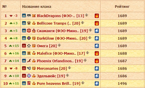 Теперь о вышеупомянутых Злостных Бесах. Они сумели остановить Черную Розу, а это не так просто, как может показаться. Миноровцы весьма сильны индивидуально, что и доказали на золотом острове. Но не на синем, где особо отметим парочку девятых уровней - Майский Кустик и angert. Не стушевались, принесли клану максимум пользы. А "пеленоидный" mortem в итоге покинул поле боя на щите. Слабо верится, что у него не нашлось антихаосных свитков, поэтому секрет успеха Прайма явно в чем-то ином. В общем, командная работа и онлайн под 20 человек - это уже что-то. Теоретически объединение со старшим кланом многое дало бы альянсу. Но, похоже, в этом сезоне кланы выступят автономно. И далеко не факт, что останутся без медалей в одной из лиг.