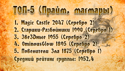 Magic Сastle в понедельник сразились с Могикан. У миноровцев была всего одна попытка поймать и убить хоть одного бледнолицего. Цель уничтожена, но задача провалена. Несмотря на множество проведенных священных ритуалов и обрядов, Индейцам, наступавшим с пяти фронтов, не удалось захватить Магический Замок. Схватка на трех точках длилась не более десяти минут, а вот вся бойня подзатянулась, издавая военные кличи, Каслы бежали в наступление, но вождю Sandjuha, блестяще управляя томагавком, удалось размозжить 17 голов. И, вопреки всему полученному ущербу (аж на 217к урона), праймовцам удалось не сдать ни одной позиции. Каслы перед финишем были вторыми в С2, минимально опережая Infected R.
