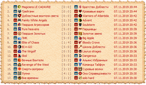 Школа Доблести стартовала с победы 5:0 над Family White Angels. Школу вполне можно обозначить как одного из претендентов на попадание в Золотую лигу. Пока - условно и осторожно, но на фоне тотального укрупнения других коллективов и низкой посещаемости ПД кланами - почему бы и нет...