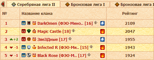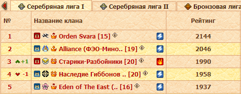 И последний момент на эту тему. На днях из уст Администрации промелькнула информация о том, что в дваре ожидается приток новых игроков, "свежей крови". Как думаете, на что будут основываться новые игроки при выборе кланов или альянсов? Медиамагнат Руперт Мёрдок уже давно обронил фразу, ставшую афоризмом: "Читателей интересуют только три вещи - секс, скандалы, спорт". Первые два пункта пропустим, а спорт в "Легенде" - это, в первую очередь, Клановые Войны. И статустность кланов определяется, как я уже сказал выше, не только сухими результатами.