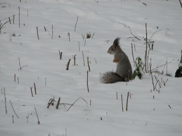 Чем он оказался примечателен? Тем, что в нём была аллея Вайфая. А также тем, что именно в нём мы встретили белочку. Живую, рыжеватенькую и смелую. Она неохотно позировала мне, постоянно бегая с места на место. И – видимо, поняв, что ничего вкусного мы ей не предложим, - скрылась за деревьями.